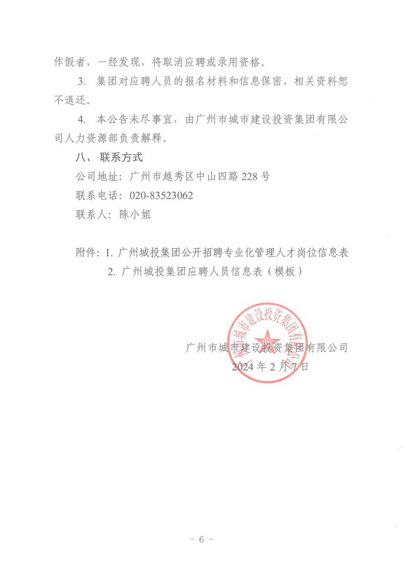 附件:1. 广州市城市建设投资集团有限公司公开招聘专业化管理人才岗位信息表