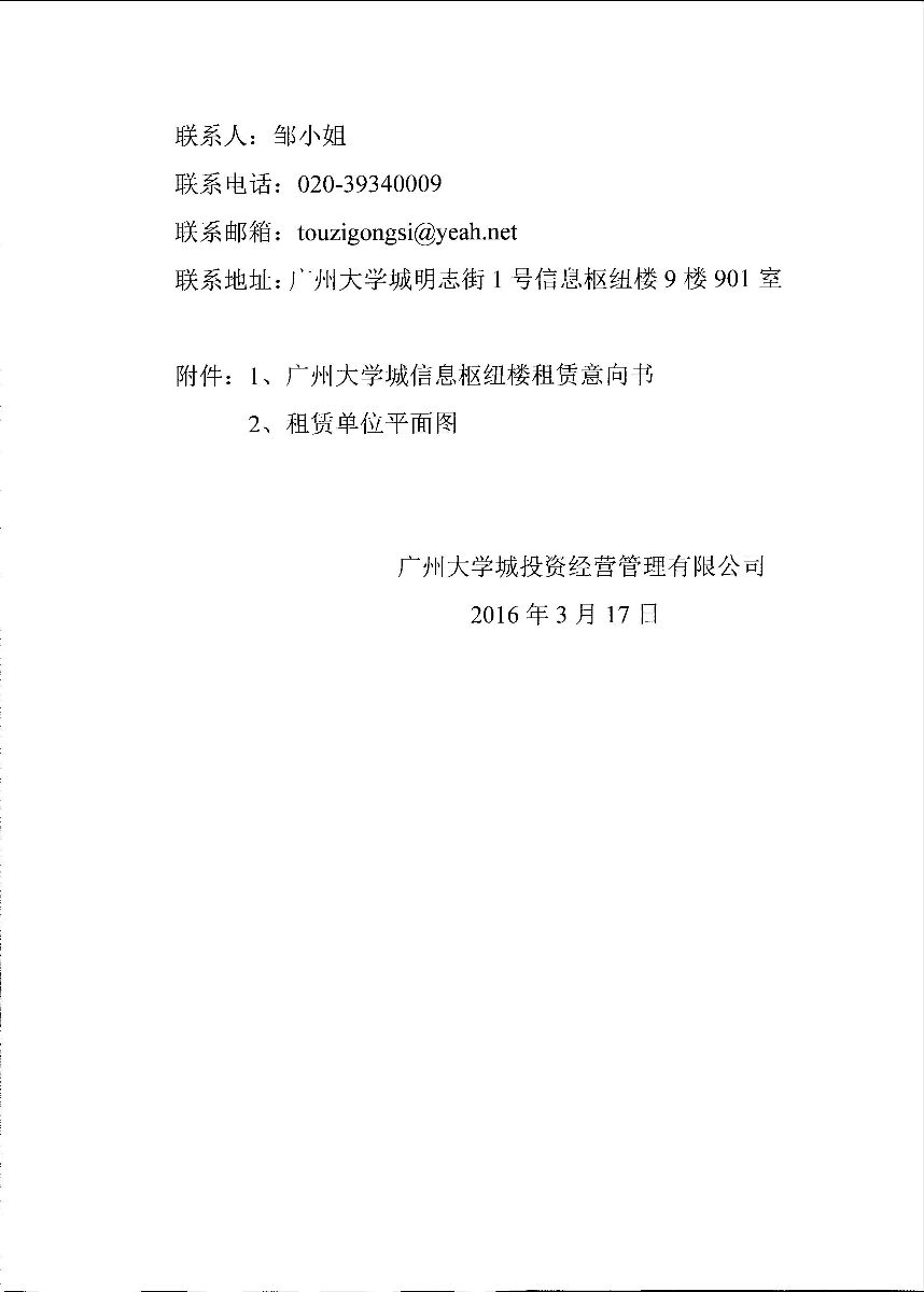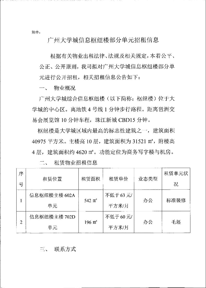 广州大学城信息枢纽楼部分单位招租信息