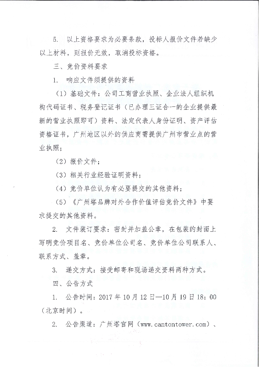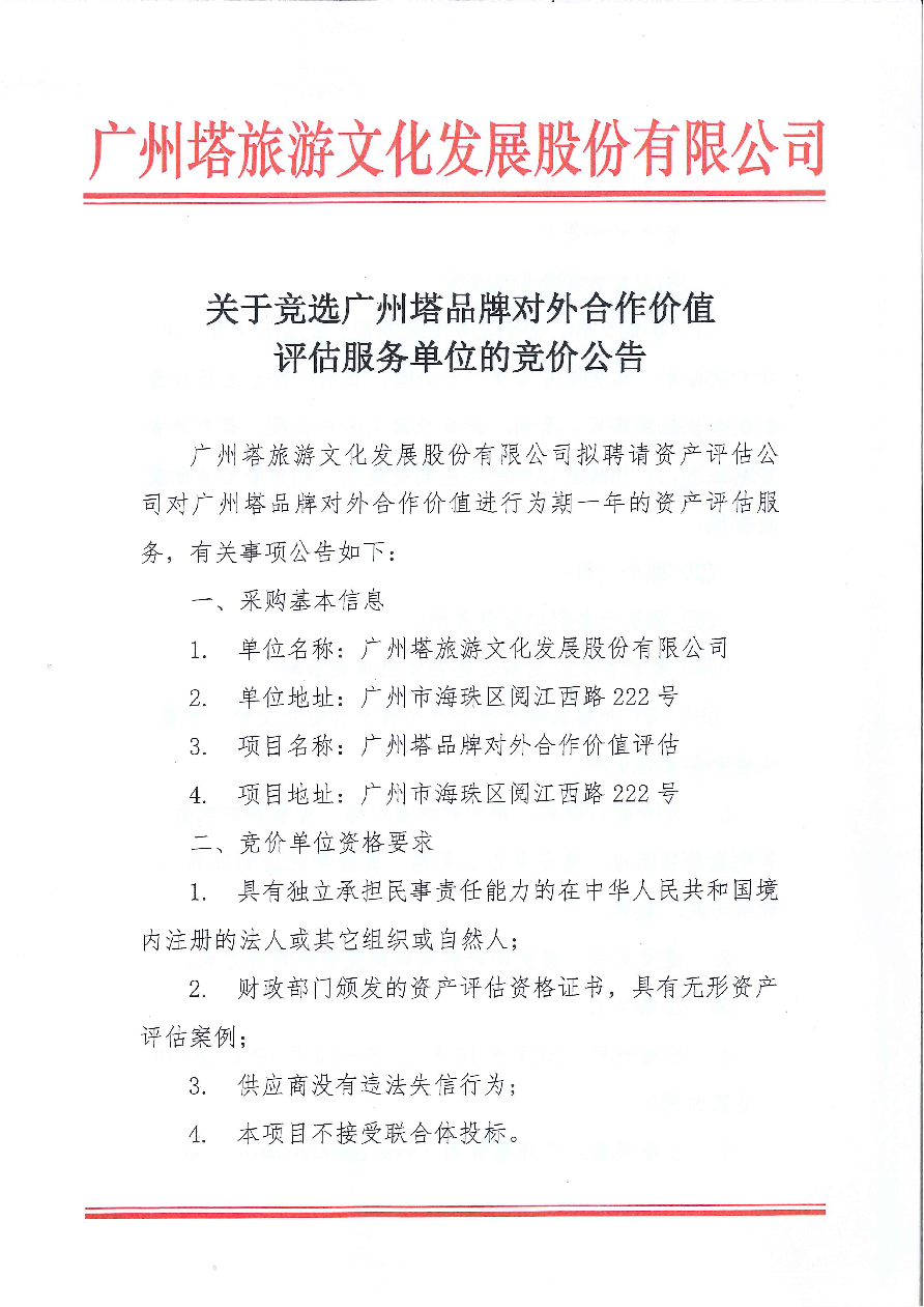关于竞选广州塔品牌对外合作价值评估服务单位的竞价公告