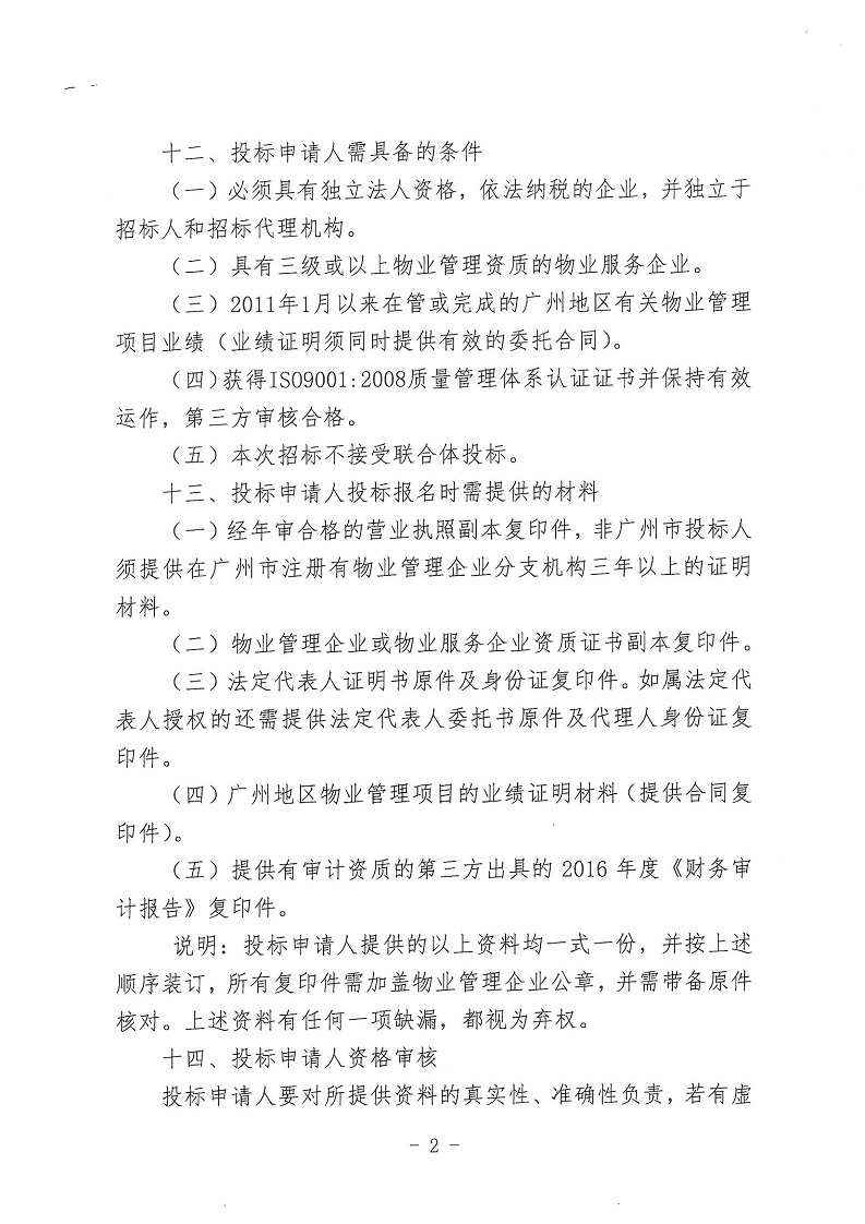 关于广州市国营白云农工商联合公司物业管理项目的招标公告
