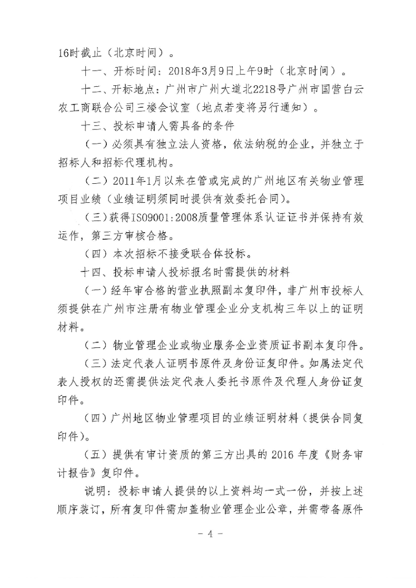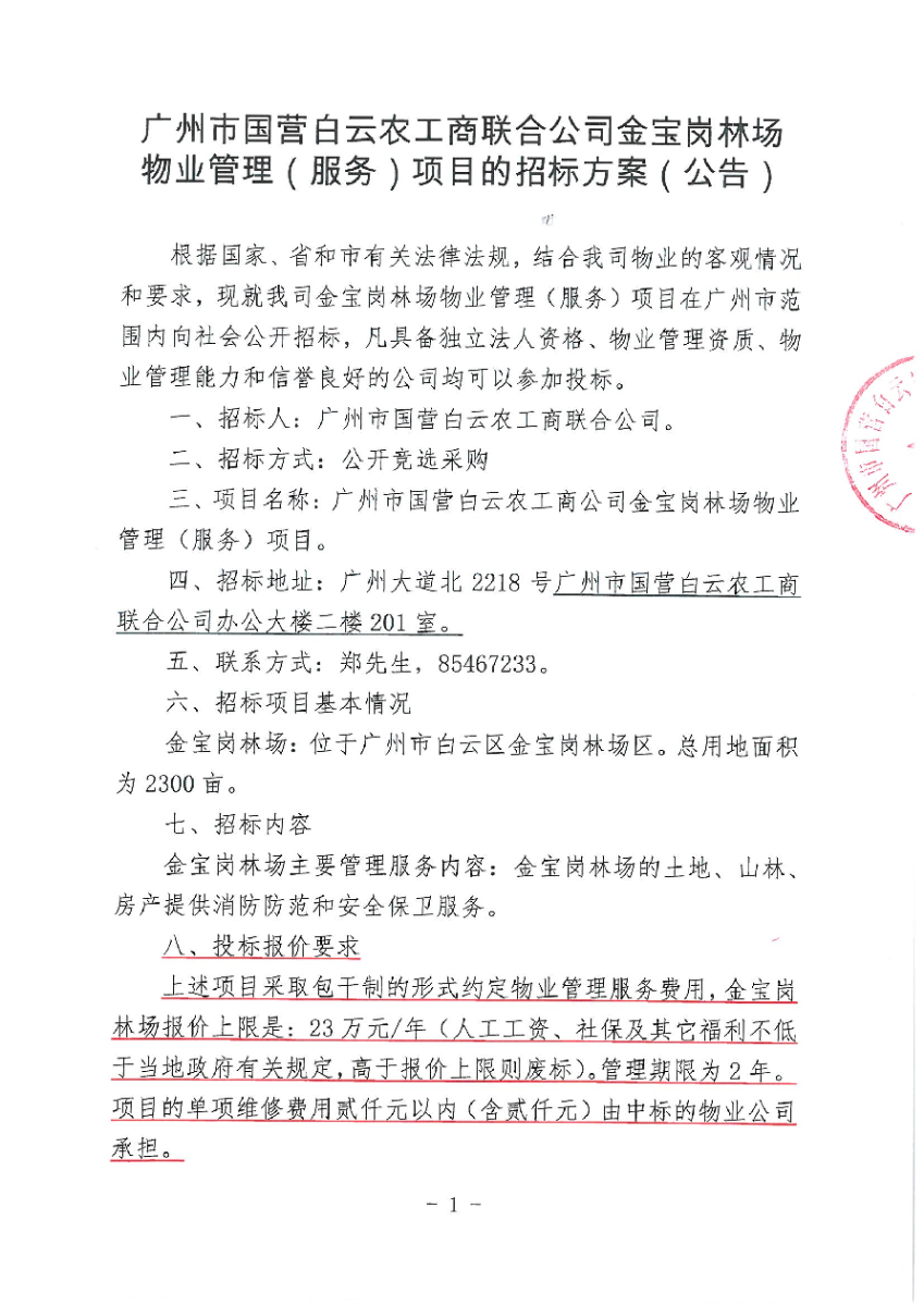 广州市国营白云农工商联合公司金宝岗林场物业管理(服务)项目的招标方案(公告)