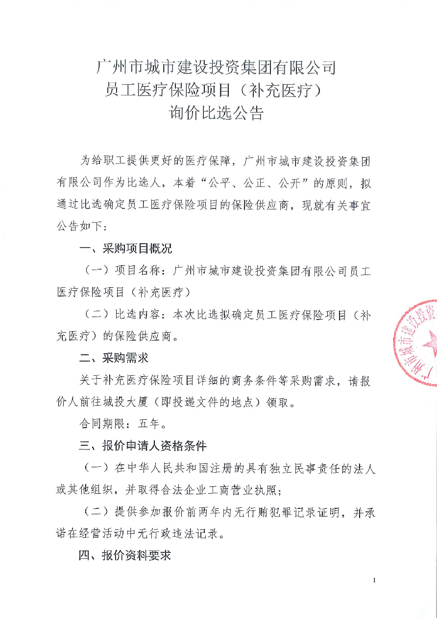 广州市城市建设投资集团有限公司员工医疗保险项目(补充医疗)询价比选公告