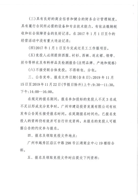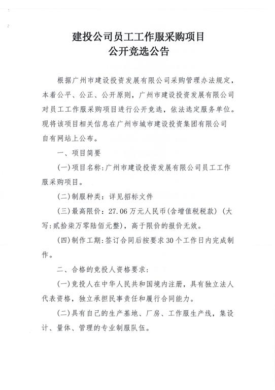 建投公司员工工作服招标公告