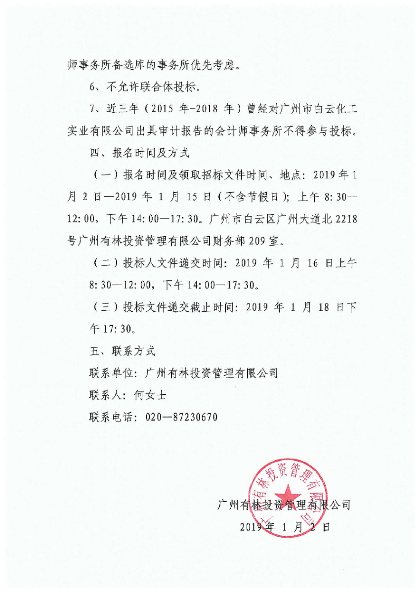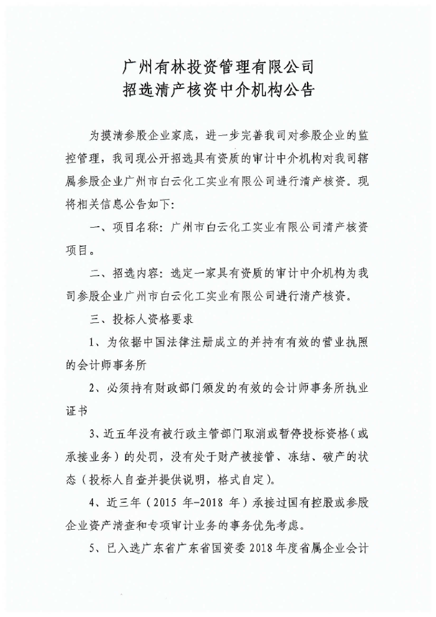 广州有林投资管理有限公司招选清产核资中介机构公告