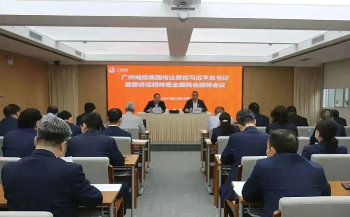 3月22日,广州市城市建设投资集团有限公司召开会议,传达学习习近平总书记在全国两会上的重要讲话精神和全国两会精神,落实省、市干部大会要求,对集团贯彻落实工作作部署安排。集团党委书记、董事长陈强讲话,党委副书记、总经理袁星侯主持。集团领导班子、中层副职及以上人员、全体党员,各下属企业领导班子、中层正职,以及集团系统各级党代表、人大代表、政协委员参会。