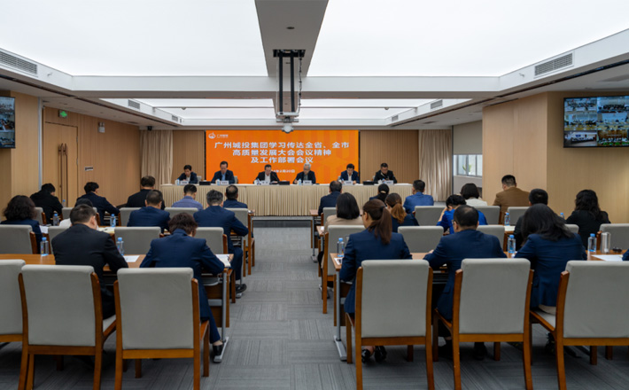 2月20日上午,广州市城市建设投资集团有限公司召开学习传达全省、全市高质量发展大会会议精神及工作部署会议。会议在集团总部设主会场,各下属企业设分会场。集团党委书记、董事长陈强等领导班子,集团本部中层以上干部以及各下属企业领导班子成员、各部门负责人超500人参加会议。