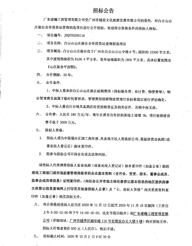 白云山山庄旅社合作投资运营商招选项目