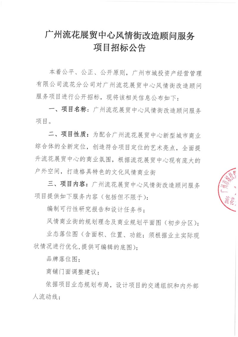 广州流花展贸中心风情街改造顾问服务项目招标公告