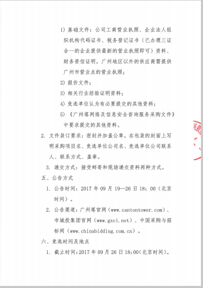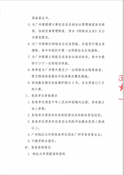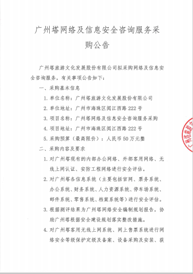 广州塔网络及信息安全咨询服务采购招商竞价公告