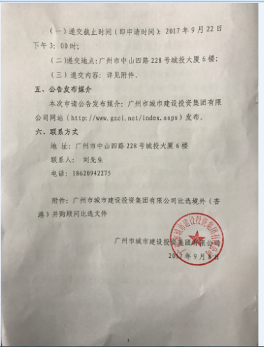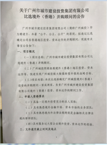 关于广州市城市建设投资集团有限公司比选境外(香港)并购顾问的公告