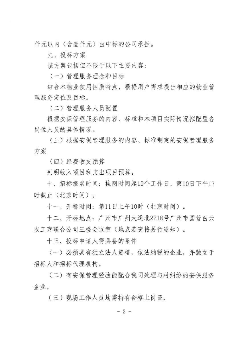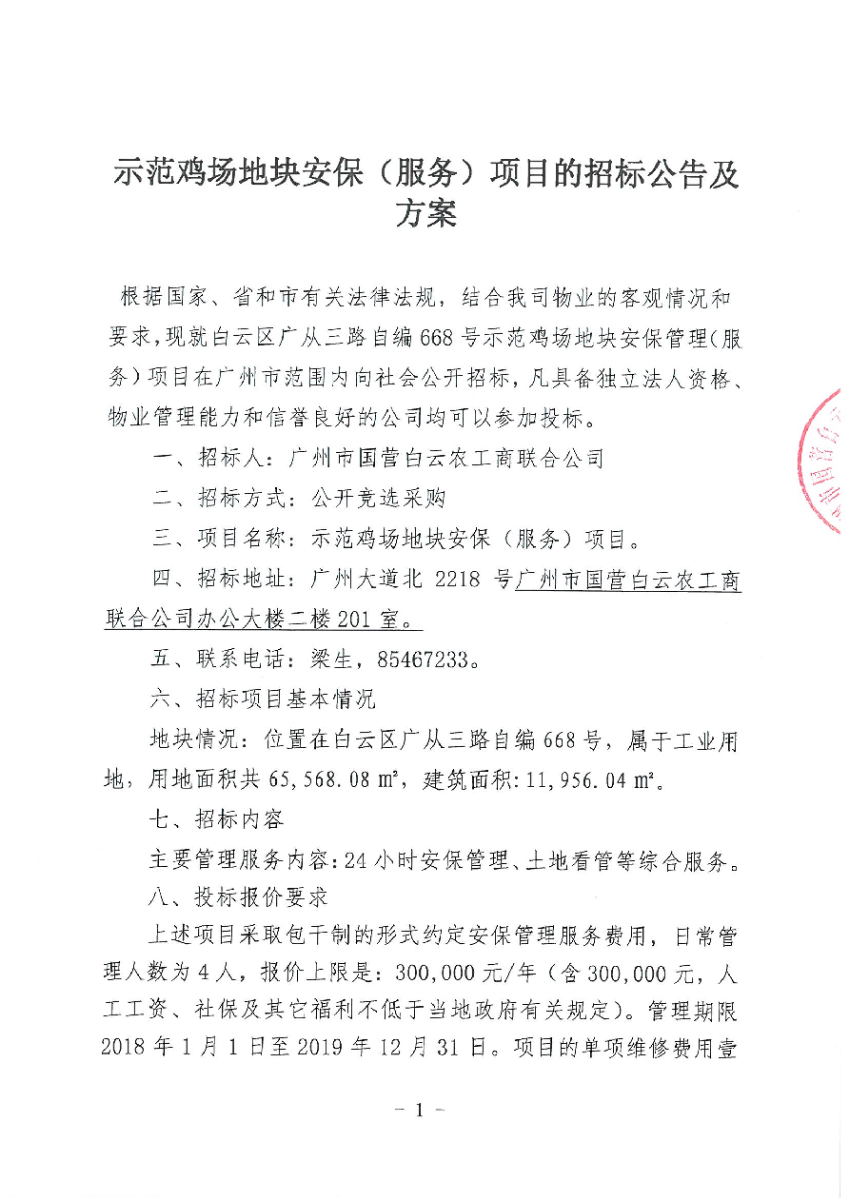 示范鸡场地块安保(服务)项目的招标公告及方案